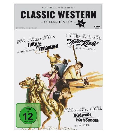 AudienceRating : Freigegeben ab 12 Jahren, Brand : Koch, Binding : DVD, Label : Koch Media GmbH - DVD, Publisher : Koch Media GmbH - DVD, NumberOfDiscs : 3, NumberOfItems : 3, Format : Dolby, Feature : Koch Media Film DVD - Classic Western Collection - Box #1, Drei digital restaurierte Edelwestern aus der Blütezeit des Hollywood-Kinos mit Starbesetzung-Fluch der Verlorenen-Speer der Rache-Südwest nach Sonora, medium : DVD, publicationDate : 2010-08-01, releaseDate : 2010-08-06, runningTime : 378 minutes, actors : Rock Hudson, Marion Brando, John Saxon, John Lund, Julie Adams, directors : Sidney J. Furie, George Sherman, Budd Boetticher, languages : english, german ...