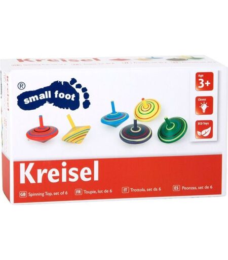 Der Klassiker unter den Holzspielzeugen! Diese farbenfroh gestreiften Kreisel sorgen für eine Menge Spaß im Kinderzimmer und trainieren ganz nebenbei die Feinmotorik! Einmal in Schwung gebracht, drehen sie sich leichtgängig und faszinieren dabei mit ihrem Farbspiel große und kleine Leute. Bei dieser Fingerübung kommt garantiert keine Langeweile auf! Höhe: ca. 6 cm, Durchmesser ca. 6 cm 6er Set ...