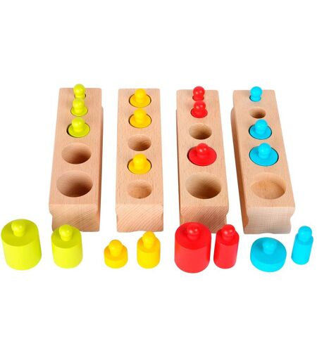 Mit dem Steckspiel Kunterbunt von Small Foot können Kinder ab vier Jahren ihr Farb- und Formverständnis schulen. Die Beschäftigung mit den unterschiedlich großen Gewichten wirkt sich positiv auf ihren Tastsinn und die Wahrnehmung aus. Steckspiel Kunterbunt von Small Foot 4 Steckplatten, 20 Gewichte in 4 verschiedenen Farben und je 5 unterschiedlichen Größen aus Holz ab 4 Jahren Das Steckspiel Kunterbunt lädt neugierige, kleine Entdecker ab vier Jahren zu ausgiebigen Erkundungen ein: Die Minis können die 20 verschiedenen Gewichte nach ihrer jeweiligen Farbe oder Größe sortieren. Sie können sie zählen, vergleichen und den Aussparungen der vier Steckplatten zuordnen. Spielerisch trainieren sie so ihre Hand-Auge-Koordination und ihre Wahrnehmung. Da das Steckspiel den Nachwuchs zu selbstbestimmten Versuchen animiert, eignet es sich optimal für einen Einsatz in der Mondetessori-Pädagogik. ...