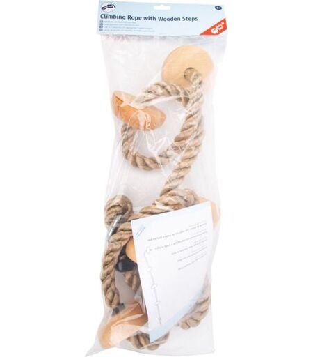 Kletterseil mit Fußtritten aus Holz Es geht hoch hinaus! Dieses Kletterseil in Naturseil-Optik ist an 5 Stellen mit runden Fußtritten aus robustem Vollholz ausgestattet. Das erleichtert Kindern das Klettern und sorgt für sicheren Halt. Mit stabilem Ring zur Aufhängung an Klettergerüst oder Schaukel. Ob indoor oder outdoor – mit diesem Seil sind Sport und Action garantiert. Das Kletterseil eignet sich auch ideal als Aufstieg in ein Baumhaus. Ganz nebenbei trainieren Kinder Körperbeherrschung, Geschicklichkeit und Kraft. Wer ist als erstes oben? ...