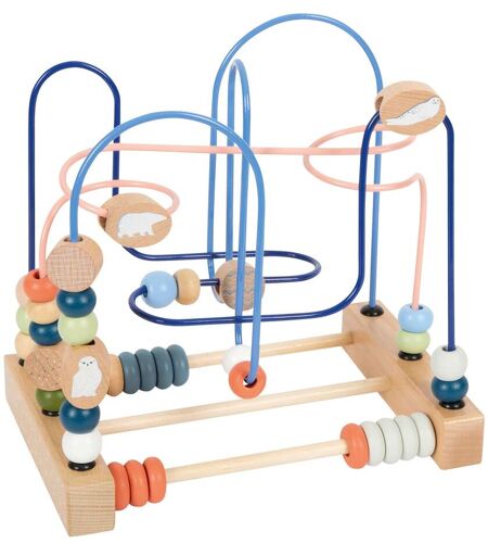 Die Motorikschleife Arctic von Small Foot schult spielerisch die Feinmotorik und unterstützt beim Zählen lernen. Motorikschleife Arctic von Small Foot 3 Metallschleifen mit Holzperlen und drei Tierportraits, 2 Abakus-Stangen mit Ringen aus Holz und Metall ab 12 Monaten Die klassische Motorikschleife begeistert kleine Polarforscher: drei ineinander verschlungene Metallschleifen mit bunten Holzperlen und drei mit Tierportraits (Eisbär, Schneeeule und Robbe) laden die Kleinen ab 12 Monaten zum Schieben und Entdecken ein. Zwei Abakus-Stangen mit bunten Ringen fördern das Verständnis von Zahlen und bringen das Zählen näher. ...