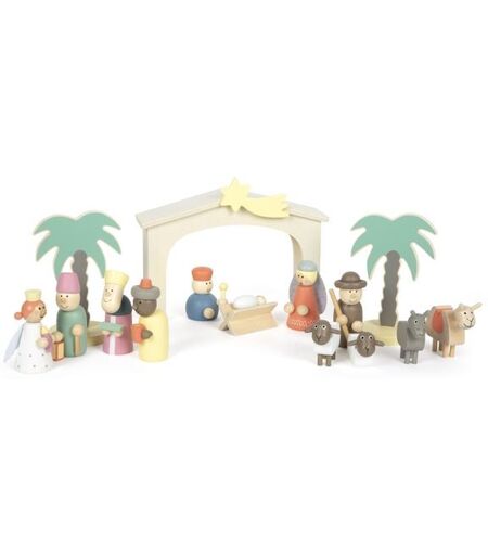 Die Jüngsten spielerisch mit der Weihnachtsgeschichte vertraut machen - das gelingt mit dieser kindgerechten Krippe aus Holz besonders gut! Dabei ist sie sowohl als Weihnachtsdekoration, als auch als Spielwelt in der Weihnachtszeit ein stimmungsvoller Hingucker. Ob Maria, Josef, das Jesuskind, die Hirten oder die Heiligen Drei Könige alle wichtigen Figuren der Weihnachtsgeschichte sind enthalten und laden zu fantasievollen Spielstunden ein. Aus handschmeichlerischem Holz gefertigt, ist die Krippe nicht nur ein Hingucker, sondern auch perfekt geeignet für kleine Kinderhände. Eine Weihnachtswelt voller Freude, die die ganze Familie auf die Festtage einstimmt! Die liebevoll gestaltete Weihnachtskrippe eignet sich ideal, um Kinder spielerisch mit der Weihnachtsgeschichte vertraut zu machen. Die detailreich gestalteten Holzfiguren und Tiere laden dabei zum Nachspielen der Weihnachtsgeschichte ein. Perfekt, um die Vorfreude auf das Fest der Liebe zu wecken! 1 Häuschen, 2 Palmen, 1 Krippe mit Kind, 4 Tiere, 7 Figuren ...