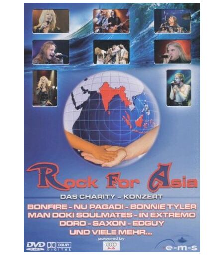 AspectRatio : 1.77 : 1, AudienceRating : Freigegeben ohne Altersbeschränkung, Brand : EMS, Binding : DVD, Label : EMS GmbH, Publisher : EMS GmbH, NumberOfDiscs : 1, RegionCode : 2, NumberOfItems : 1, Format : Dolby, Feature : Ländercode 2 • Proud Of My Country - Bonfire • Erdbeermund - In Extremo • Sweetest Poison - Nu Pagadi • Lavatory Lovemachine - Edguy • Hellvetia - Crystal Ball • Amazing Grace - Dorothee De Kay • Requiem (We Will Remember) - Saxon • All You Need Is Love - Man Doki Soulmates, medium : DVD, releaseDate : 2005-03-03, runningTime : 160 minutes, theatricalReleaseDate : 2005-01-01, actors : In Extremo, Doro, David Knopfler, directors : Rock For Asia ...