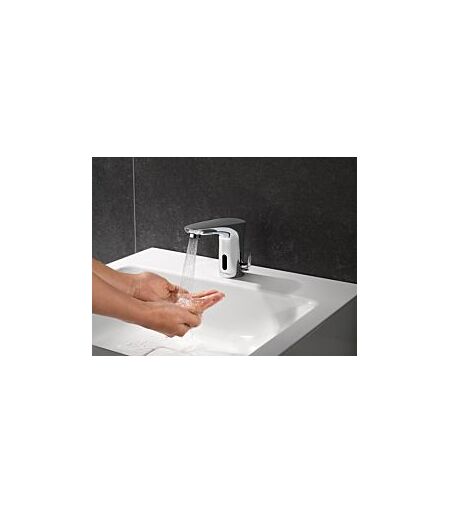 Schell Modus E Elektronische-Waschtisch-Armatur 021720699 HD-K - Hochdruck Kaltwasser / vorgemischtes Wasser Infrarot-Sensor gesteuert Batteriebetrieb mit Infrarot-Sensor-Einlocharmatur Infrarot-Sensor-Elektronik programmierbar Magnetventil 6 V Strahlregler Anschlusskabel 200 mm mit Stecker 2-polig Schutzklasse IP 65 flexibler Anschlussschlauch G 3/8 IG x 450 mm mit Vorfilter Batteriefach 6 V Schutzklasse IP 65 4x AA Alkalibatterien 1 5 V Befestigungsmaterial für Waschtischmontage Einstellmöglichkeiten über Nahreflex Sensor-Reichweitenbereich (ca. 2 - 17 cm) Stagnationsspülung (Aus / Dauerfluss 30 s 24 h nach letzter Nutzung) Reinigungsstopp (Aus / 120 s) Durchfluss max. 3 l/min druckunabhängig Fließdruck 0 5 - 5 0 bar max. Ruhedruck 8 bar max. Betriebstemperatur 70 °C (kurzzeitig z.B. für thermische Desinfektion) Werkstoff Gehäuse Messing konform TrinkwV Oberfläche chrom Anschluss G 3/8 IG Zertifikate P-IX 29853/IO Geräuschklasse I Durchflussklasse O ...