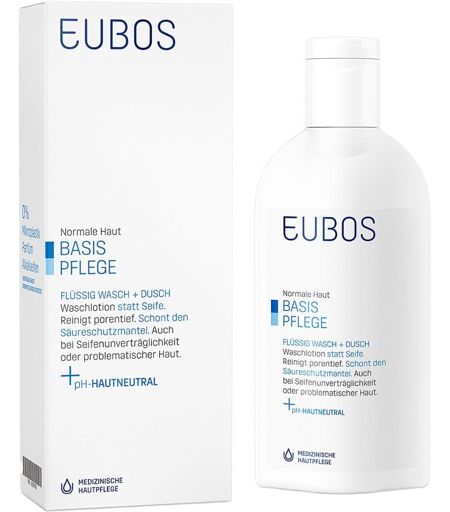 Anwendungsgebiet von Eubos Flüssig blau unparfüm.Eubos Flüssig blau unparfüm. ist eine Wasch-, Dusch- und Badeemulsion zur täglichen schonenden Körperreinigung. Durch spezielle Waschrohstoffe und pflegende Komponenten ist Eubos Flüssig blau unparfüm. für empfindliche und problematische Haut geeignet und kann selbst bei Seifenunverträglichkeit verwendet werden. Eubos Flüssig blau unparfüm. ist unparfümiert und wird besonders bei Duftstoffunverträglichkeiten empfohlen.Wirkungsweise von Eubos Flüssig blau unparfüm.Die alkaliseifenfreie, pH-hautneutrale Formulierung reinigt mild und porentief unter Schonung der natürlichen Biosphäre, des Schutzmantels der Haut. Durch die ausgewogene Zusammensetzung wird auch bei regelmäßiger Anwendung die Schutzfunktion der Haut gewahrt. Sie fühlt sich nach der Reinigung porentief sauber, erfrischt und glatt an.Wirkstoffe / Inhaltsstoffe / ZutatenInhaltsstoffe von Eubos Flüssig blau unparfüm.: