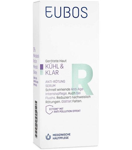 Anwendungsgebiet von Eubos Kühl & Klar Anti-rötung SerumEubos Kühl & Klar Anti-rötung Serum ist ein medizinisches Pflegeprodukt zur Reduzierung von Hautirritationen und Rötungen mit Anti Age-Effekt.