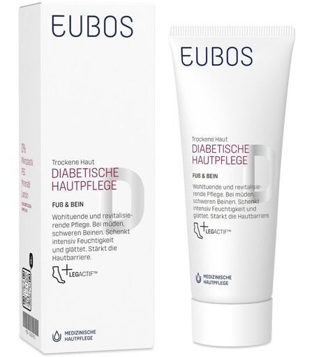 EUBOS- DIABETISCHE HAUT PFLEGE FUß & BEIN. Medizinisches Pflegeprodukt speziell für die diabetische Haut Wohltuende Vitalisierung durch 3-fach Pflanzenextrakt LEGACTIFTM Stärkung der natürlichen Hautbarriere durch den Algenextrakt Pheohydrane, Urea, Lactat und Glycerin. Hautberuhigung durch Bisabolol, Allantoin und Panthenol Intensiv und langanhaltend erhöhte Hautfeuchtigkeit Geschmeidige, spürbar glattere Haut schon nach wenigen Tagen Die komplette DIABETISCHE HAUT PFLEGE Serie ist für die wirkungsvolle Pflege diabetischer Haut geeignet Hauttyp Trockene Haut INCI Aqua (Water) , Glycerin , Olea Europaea (Olive) Fruit Oil , Urea , Sodium Citrate , Caprylyl Caprylate/Caprate , Cetearyl Alcohol , Butyrospermum Parkii (Shea) Butter , Prunus Amygdalus Dulcis (Sweet Almond) Oil , Pentaerythrityl Distearate , Panthenol , Neopentyl Glycol Diheptanoate , Sodium Acrylates Copolymer , Sodium Caproyl/Lauroyl Lactylate , Arachidyl Alcohol , Lactic Acid , Cetearyl Glucoside , Dimethicone , Behenyl Alcohol , Lecithin , Arachidyl Glucoside , Xanthan Gum , Citric Acid , Allantoin , Sodium Benzoate , Bisabolol , Potassium Sorbate , Ruscus Aculeatus Root Extract , Solidago Virgaurea (Goldenrod) Extract , Citrus Limon (Lemon) Peel Extract , Hydrolyzed Algin , Maris Aqua (Sea Water) , Chlorella Vulgaris Extract , Tocopherol , Parfum [Fragrance] ...