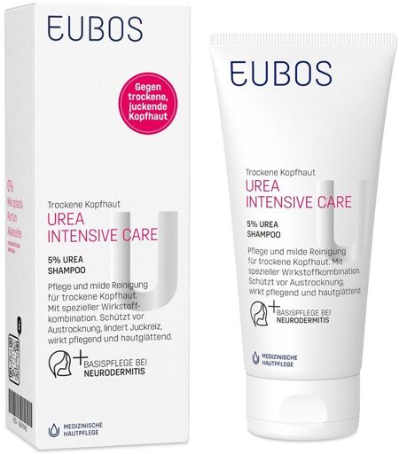 Mit Panthenol, Oligofructose, Meeresmineralien und hautverwandten Lipiden.Schützt vor Austrocknung, wirkt rückfettend. Glanz und Kämmbarkeit werden verbessert. Auch für Kinder geeignetDas milde, schonend reinigende Shampoo mit Panthenol, Oligofructose und Meeresmineralien ist eine medizinische Spezialreinigung zur regelmäßigen – auch täglichen – Anwendung bei trockener und sehr trockener, juckender Kopfhaut und trockenem, beanspruchtem Haar. Auch zur Therapie begleitenden Pflege z. B. bei Neurodermitis, Psoriasis. Die Inhaltsstoffe und ihre Wirkungen:Trockene Haut weist oft einen Mangel an Lipiden und insbesondere an Urea – einem physiologischen, natürlichen Feuchthaltefaktor – auf. Als Folge kann es zum weiteren Austrocknen der oberen Hautschicht kommen. EUBOS 5 % UREA SHAMPOO ist aufgrund seiner besonders milden Kombination waschaktiver Substanzen für eine schonende aber gründliche Reinigung von Kopfhaut und Haar geeignet. Mit Feuchtigkeit bindendem Urea und Glycerin schützt es nachweislich vor Austrocknung. Hautverwandte pflanzliche Lipide (aus der Sonnenblume) wirken rückfettend und pflegend. Panthenol und Oligofructose aus Chicorée wirken hautberuhigend und verbessern Glanz und Kämmbarkeit des Haares. Meeresmineralien ergänzen die umfassende Pflegewirkung und helfen, eventuellen Juckreiz zu mindern.Zur besonders guten Verträglichkeit:EUBOS 5 % UREA SHAMPOO ist:Parfüm-frei Farbstoff-frei Alkaliseifen-frei ohne Cocamidopropylbetain pH-Wert:pH-hautneutralDie Anwendung:In das gut durchfeuchtete Haar einmassieren und mit Wasser aufschäumen, etwas einwirken lassen. Anschließend gründlich ausspülen. Den Vorgang bei Bedarf wiederholen. Auch für Kinder geeignet.Hinweis: Nicht über 25°C lagern.Das Ergebnis:Die ausgewählte Kombination der Inhaltsstoffe schützt vor Austrocknung, wirkt rückfettend und hautglättend. Trockenes und beanspruchtes Haar lässt sich wieder gut kämmen und gewinnt an Glanz und Geschmeidigkeit. Dermatologische Prüfungen bestätigen die sehr milde und schonenden Reinigungswirkung sowie die ausgezeichnete Verträglichkeit, besonders auch bei sehr trockener Problemhaut und sprödem Haar. Fachärztlich geprüft, insbesondere bei Neurodermitis und Altershaut. Zusammensetzung: Aqua, Sodium Laureth Sulfate, Glycerin, Urea, Disodium Cocoamphodiacetate, Inulin, Sodium Cocoyl Glutamate, Lactic Acid, Coco-Glucoside, Panthenol, Glyceryl Oleate, Sodium Lactate, PEG-18 Glyceryl Oleate/Cocoate, Maris Sal, Triacetin, Sodium Chloride, Potassium Sorbate.HINWEIS: Bitte beachten Sie, dass es sich bei den hier genannten Ingredients um die aktuell produzierte Rezeptur handelt. Da EUBOS® dauerhaft bemüht ist, die Zusammensetzung der Produkte zu optimieren und stets den neuesten dermatologischen Erkenntnissen anzupassen, kann es im Ausnahmefall vorkommen, dass Sie eine Packung mit einer leicht abweichenden Formulierung finden. ...