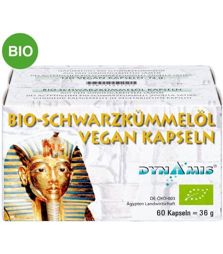 Anwendungsgebiet von Dynamis Ägyptisches Schwarzkümmelöl Bio vegan KapselnÄgyptische BIO-Schwarzkümmelöl-Kapseln Vegan in naturreiner Premium-QualitätDynamis Ägyptisches Schwarzkümmelöl Bio Vegan (Nigella sativa) von DYNAMIS enthalten hochwertiges Schwarzkümmel-Öl in BIO-Qualität – in praktischer Kapselform.Das Schwarzkümmelöl in den veganen Kapseln stammt aus kontrolliert biologischem Anbau in den fruchtbaren Oasen Ägyptens. Schwarzkümmel wird seit über 3000 Jahren in der altägyptischen Tradition geschätzt – schon in den Gräbern der Pharaonen fanden sich Schwarzkümmel-Samen. Das sonnenreiche Wüstenklima entlang des Nils lässt besonders ölreiche und aromatische Samen gedeihen – die perfekte Grundlage für ein außergewöhnliches hochwertiges Schwarzkümmel-Öl in Kapselform.DYNAMIS BIO-Schwarzkümmelöl-Kapseln Vegan verbinden diese überlieferte Weisheit mit moderner, schonender Verarbeitung. Das enthaltene Öl zeichnet sich durch einen hohen Thymochinon-Gehalt aus und macht die Schwarzkümmel-Kapseln besonders wertvoll.Schonend kaltgepresst in der Allgäuer ÖlmühleDie BIO-Schwarzkümmelsamen für das Öl stammen aus kontrolliert biologischem Anbau in Ägypten. Nach der Ernte gelangen sie direkt nach Deutschland, wo sie in der BIO- und Demeter-zertifizierten Allgäuer Ölmühle in kleinen Chargen besonders schonend kaltgepresst werden. Dieser Prozess erfolgt ohne Hitze, chemische Zusätze oder Aromaverstärker. So bleiben der intensive, charakteristische Geschmack, die goldbraune Farbe und die naturreine Qualität vollständig erhalten. Das Öl wird in eine pflanzliche Kapselhülle eingeschlossen, die eine bequeme und saubere Anwendung auch unterwegs oder auf Reisen ermöglicht. Das ausgewogene Zusammenspiel von mehrfach ungesättigten Fettsäuren, B-Vitaminen, Beta-Carotin, Biotin sowie wertvollen Spurenelementen wie Zink und Selen macht diese kaltgepressten Schwarzkümmelöl-Kapseln zu einem hochwertigen Produkt – ...