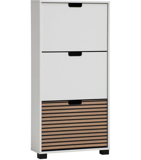 2er-Schuhschrank »Ryker«, matt weiß Farbe: Matt weiß Untere Klappe Akustikplattenoptik Griffausschnitt und Füße schwarz Material: Melaminharzbeschichtete Spanplatte. Füße Kunststoff. Griffe und Beschläge Metall Maße: B x H x T ca. 59,8 x 124 x 19,5 cm Klappen je ca. 38 x 55,9 cm Höhe Füße ca. 4 cm, bis 8 mm höhenverstellbar Inhalt: Inkl. Montageanleitung Gewicht: Ca. 22 kg Gebrauchsanweisung: Mit einem feuchten, nicht nassen Tuch reinigen Pflegeprodukte sind nicht notwendig Warnhinweise: Beiliegende Montageanleitung vollständig beachten Sonstige Hinweise: Artikel wird zerlegt geliefert Lieferung in 1 Packstück Anlieferung frei Haus Keine Inselbelieferung B x H x T Packstück ca. 40,x 9,5 x 128 cm Hersteller-Artikel-Nummer: 160032 Hersteller: W. Schildmeyer GmbH & Co. KG, Sachsenweg 55, 32547 Bad Oeynhausen E-Mail: info@w-schildmeyer.de 3 Klappen mit 1-reihigen SchuhtrommelnPlatz für ca. 9 Paar Schuhe bis Schuhgröße 44/45, Schuhlänge ca. 33 cmPlatzsparend durch geringe TiefeKlappenbeschlag mit Einrastung zum sicheren Öffnen und SchließenFüße höhenverstellbar um Unebenheiten im Boden auszugleichenWandbefestigung erforderlichVielseitig mit weiteren Elementen der Serie kombinierbarEinfache Montage mit verständlicher AufbauanleitungMADE IN GERMANY ...