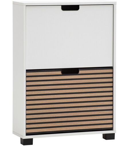 2er-Schuhschrank »Ryker«, matt weiß Farbe: Matt weiß Untere Klappe Akustikplattenoptik Griffausschnitt und Füße schwarz Material: Melaminharzbeschichtete Spanplatte. Füße Kunststoff. Griffe und Beschläge Metall Maße: B x H x T ca. 59,8 x 85,2 x 19,5 cm Klappen je ca. 38 x 55,9 cm Höhe Füße ca. 4 cm, bis 8 mm höhenverstellbar Inhalt: Inkl. Montageanleitung Gewicht: Ca. 16 kg Gebrauchsanweisung: Mit einem feuchten, nicht nassen Tuch reinigen Pflegeprodukte sind nicht notwendig Warnhinweise: Beiliegende Montageanleitung vollständig beachten Sonstige Hinweise: Artikel wird zerlegt geliefert Lieferung in 1 Packstück Anlieferung frei Haus Keine Inselbelieferung B x H x T Packstück ca. 40 x 10,5 x 89 cm Hersteller-Artikel-Nummer: 160030 Hersteller: W. Schildmeyer GmbH & Co. KG, Sachsenweg 55, 32547 Bad Oeynhausen E-Mail: info@w-schildmeyer.de 2 Klappen mit 1-reihigen SchuhtrommelnPlatz für ca. 6 Paar Schuhe bis Schuhgröße 44/45, Schuhlänge ca. 33 cmPlatzsparend durch geringe TiefeKlappenbeschlag mit Einrastung zum sicheren Öffnen und SchließenFüße höhenverstellbar um Unebenheiten im Boden auszugleichenWandbefestigung erforderlichVielseitig mit weiteren Elementen der Serie kombinierbarEinfache Montage mit verständlicher AufbauanleitungMADE IN GERMANY ...