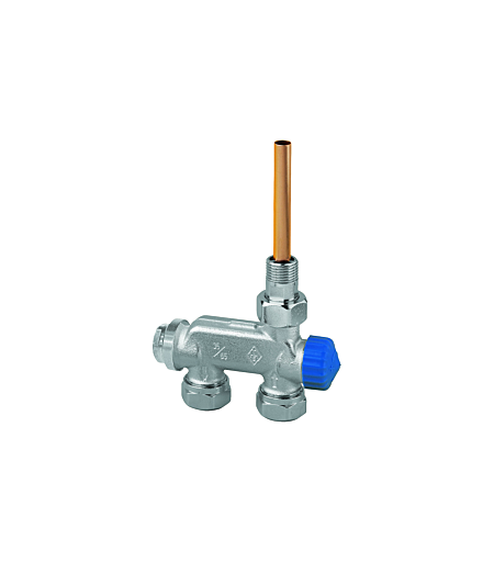 Heimeier Ventil E-Z Zweirohr Artikelnummer: 387802000 Zweirohrventil für Heizkörper mit unterem Einpunktanschluß. Mit Tauchrohr, Einschraublänge max. 250 mm Gehäuse aus korrosionsbe- ständigem entzinkungsfreiem Rotguß, vernickelt Mit Niro-Stahlspindel und doppelter O-Ring-Abdichtung. Äußerer O- Ring ohne Entleeren der Anlage auswechselbar. Vor- und Rücklauf absperrbar. Voreinstellbar über Rücklaufabsperrung. Anschluß Außen- gewinde G 3/4, in Verbindung mit Klemmverschraubungen für Kunst- stoff-, Kupfer-, Präzisionsstahl- oder Verbundrohr Zul. Betriebstemperatur TB 120 Grd. C. Zul. Betriebsüberdruck PB 10 bar. Fabrikat: Heimeier Typ: E-Z Ventil Nennweite: DN 15 (1/2") Ausführung: Zweirohr Durchgangsform ...