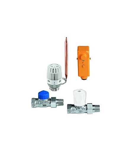 Heimeier Fußboden-Regelset 2 mit verdeckter Temperatureinstellung HEIMEIER Fußboden-Regel-Set für die konstante Regelung der Vorlauf- temperatur bei kombinierten Fußboden-/ Radiatorheizungen. Im einzelnen bestehend aus 1 Thermostat-Kopf K mit Anlegefühler. Sollwertbereich 20 bis 50 Grd. C. Merkzahl 20-30-40-50. 2 m Kapillar- rohr. 1 Elektr. Rohranlegeregler. Einstellbereich 10 bis 90 Grd. C. 230 V, 15 A, mit verdeckter Tempera- tureinstellung. 1 Thermostat-Ventilunterteil DN 15 (1/2)," Durchgangsform aus Rotguß vernickelt. 1 Mikrotherm-Regulierventil DN 20 (3/4)," Durchgangsform aus Rotguß vernickelt. Fabrikat: Heimeier Ausführung: Set 2 Fußbodenfläche: bis 85 m2 Art.-Nr. 9690-02.000 ...