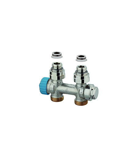 Heimeier Multilux Ventil-Einrohrsystem 3854-02.000das Multilux Thermostat-Ventilunterteil wird für den Anschluss an Heizkörper mit unterem Zweipunktanschluss wie z.B. BadheizkörperUniversalheizkörper etc. verwendetfür Heizkörper mit unterem ZweipunktanschlussMittenabstand der Anschlüsse 50 mm (+/-10 mm)Gehäuse aus korrosionsbeständigementzinkungsfreiem Rotgussvernickeltmit Niro-Stahlspindel und doppelter O-Ring-Abdichtungäußerer O-Ring ohne Entleeren der Anlage auswechselbarVor- und Rücklauf absperrbarseparater Regulierkegel für reproduzierbare VoreinstellungAnschluss für Entleerungs- und FülleinrichtungVor- und Rücklaufanschluss sind beliebig wählbarAnschluss Außengewinde G 3/4in Verbindung mit Klemmverschraubungen für Kunststoff-Kupfer-Präzisionsstahl- oder Verbundrohrzulässige Betriebstemperatur TB 120 °Cmit Verkleidung TB 90 °Czulässiger Betriebsüberdruck PB 10 barAnschlussstücke für Heizkörperanschlüsse R 1/2 der G 3/4Toleranzausgleich +/- 10 mm durch spezielle Überwurfmuttern und flexibles Flachdichtungs-System für spannungsfreie MontageAnschluss für Thermostat-Köpfe und Stellantriebe M 30 x 15 ...