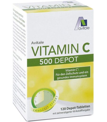Anwendungsgebiet von Vitamin C 500 mg Depot TablettenVitamin C 500 mg Depot Tabletten sind ein Nahrungsergänzungsmittel mit 500 mg Vitamin C. Depot-Tabletten mit zeitverzögerter Wirkstofffreigabe.