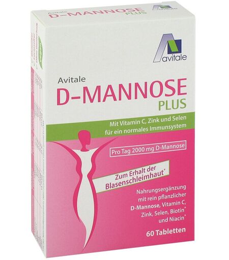 D-Mannose ist ein Einfachzucker und wird zur Vorbeugung und zur zusätzlichen Behandlung bei Blasenentzündung (Zystitis) eingesetzt. D-Mannose wird nach der Einnahme unverändert mit dem Harn ausgeschieden. In der Harnblase verhindert D-Mannose, dass Bakterien am Deckgewebe der ableitenden Harnwege binden können. Hierdurch kann eine Ansiedlung der Bakterien verhindert werden. Avitale D-Mannose Plus enthält rein pflanzliche D-Mannose, gewonnen aus Mais. Sie wurde ausgewogen kombiniert mit wichtigen Vitaminen und Mineralstoffen für das Wohlbefinden von Frauen.