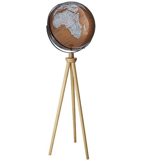 SPUTNIK war der Name der ersten zehn sowjetischen Satelliten, die zwischen 1957 und 1961 ins All aufstiegen. Große Aufmerksamkeit zieht auch der gleichnamige Globus auf sich. Die Weltkugel wird durch ihren imposanten Durchmesser von 430 Millimeter sowie durch ihr handwerklich gearbeitetes Eichenholzgestell geprägt. Er steht in fünf verschiedenen Varianten zur Auswahl. Ein schönes Detail ist außerdem das verchromte Metallgestell mit seinen zwei Achsen. Ø 43 cm Durchmesser und Standfuß, dreibeiniges Eichenholzgestell, Gesamthöhe 1,40m, zwei verchromte, bewegliche Metallachsen Farbe: glänzend bronze/silber ...