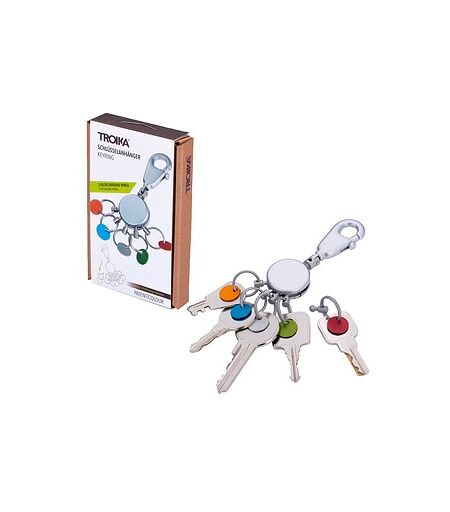 Schlüsselanhänger mit System und FarbeDer TROIKA® Schlüsselanhänger PATENT/Colour kombiniert ein mehrfarbiges Design mit praktischer Funktionalität. Er ist aus robustem Metall gefertigt und bringt Ordnung an den Schlüsselbund. Praktisch organisiertDer Anhänger ist mit einem Karabiner ausgestattet und verfügt über fünf ausklinkbare Ringe. So lassen sich Schlüssel übersichtlich sortieren und bei Bedarf schnell abnehmen oder hinzufügen. Aus langlebigem MetallDas hochwertige Metall sorgt für Stabilität, während die mehrfarbige Gestaltung dem Schlüsselanhänger einen modernen Blickfang verleiht – stilvoll und zugleich praktisch.Bestellen Sie den TROIKA® Schlüsselanhänger PATENT/Colour jetzt und tragen Sie Ihre Schlüssel künftig sicher, farbenfroh und gut organisiert! ...