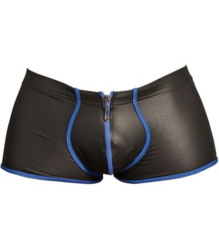 Stylische Pants im schwarzen elastischen Matt-Look mit auffälligen Streifen in Kontrastfarbe Royalblau. Auch der Reißverschluss vorne ist in dieser royalen Knallfarbe gehalten. 90% Polyester, 10% Elasthan, Polyurethan-Beschichtung. ...