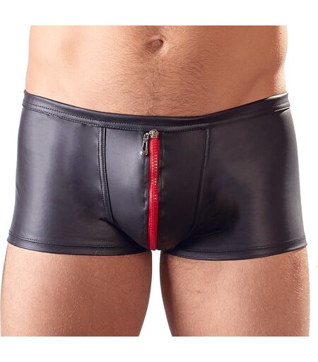 Pants im schwarzen Mattlook mit unterlegtem rotem Front-Reißverschluss. 90% Polyester, 10% Elasthan, Polyurethan-Beschichtung. ...