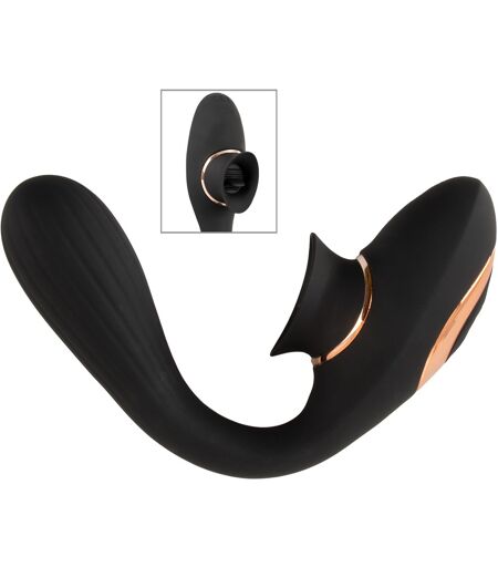 Biegsamer Klit-Vibrator von Best Mate Premium. Verwöhnt mit tiefgehenden Vibrationen intensiv in der Vagina und gleichzeitig außen mit beweglicher Zunge die Klitoris. Das flexible Doppeltoy ist rundum aus seidig softem Silikon gefertigt, in jede Richtung biegsam und verharrt auch in Wunschposition. So passt sich alles perfekt dem Körper, den Bewegungen und dem Spiel an. Ein vielseitig einsetzbares Toy für den Spaß allein oder zu zweit! Die Vibrationen im geriffeltem Schaft sind in 10 verschiedenen Modi steuerbar. Und auch die bewegliche softe Zunge im optimal geformten Klitorisstimulator bietet mit 10 Modi viel Abwechslung beim Stimulieren. Die Funktionen sind bequem per Knopfdruck direkt am Toy steuerbar – getrennt oder aufregend miteinander kombiniert. Der leistungsstarke Motor sorgt dabei für zuverlässige Power – und das alles flüsterleise! Wiederaufladbar – inklusive USB-Ladekabel. Gesamtlänge 22,3 cm. Einführlänge 14,5 cm, Ø 1,5 cm – 3,4 cm. Gewicht 155 g. Silikon, PU, ABS. ...