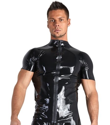 Hautenges Shirt mit kleinem Stehkragen und Reißverschluss in der Front. Vielseitig kombinierbar und absolut erregend im Tragegefühl. Latex. Hergestellt unter Verwendung von Naturkautschuk, der Allergien verursachen kann. ...