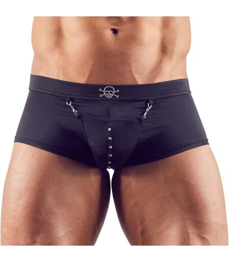Figurbetonte Piraten-Pants mit Beutel und Karabinerhaken. Mit Swellfunktion für eine beeindruckende Frontwölbung und authentischem genietetem Totenkopf am Bund. Perfekt für wilde Abenteuer und heiße Rollenspiele. 80% Polyamid, 20% Elasthan. ...