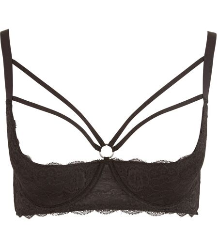 Leicht gefütterte Bügel-Hebe mit Zierring und raffinierten Riemchen-Details im Dekolleté. Komplett aus weicher, elastischer Blütenspitze. 90% Polyamid, 10% Elasthan. ...