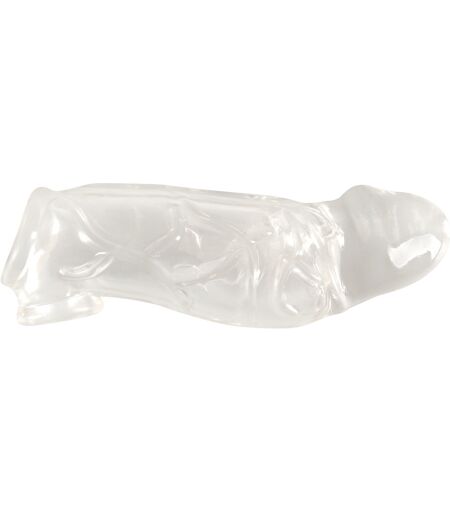 Transparente, ausgeprägt geäderte Penishülle mit Hodenring Penis Sleeve with extension + ball ring von Crystal Clear bringt den Penis in Topform für ausfüllende Lustmomente. Die eng sitzende, erektionsunterstützende Hülle aus weichem Stretchmaterial wird einfach über das erigierte Glied gestreift. Der integrierte Hodenring sorgt für festen angenehmen Sitz ohne Abrutschen. Dank des prächtigen Außendurchmessers und der Materialstärke ist der Penis im Umfang deutlich vergrößert. Und die massive Eichel verlängert um 5 cm! Gesamtlänge 19,2 cm. Hülle Einführlänge 15,2 cm, Einführtiefe 14 cm, Verlängerung 5,2 cm, Innen-Ø 2,9 cm (dehnbar), Außen-Ø 5,5 cm. Hodenring Innen-Ø 2 cm (dehnbar). Materialstärke 0,5 cm. Gewicht 154 g. TPE. ...