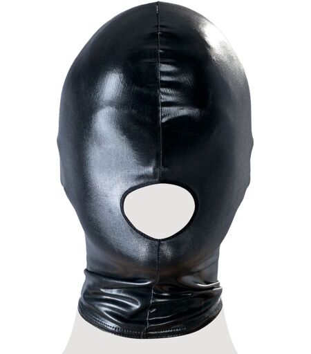 Eng anliegende Kopfmaske im schwarzen, hochglänzenden Wetlook. Die Mundöffnung ermöglicht Widerworte... Halssaum mit Gummiband eingefasst. 92% Polyester, 8% Elasthan. ...