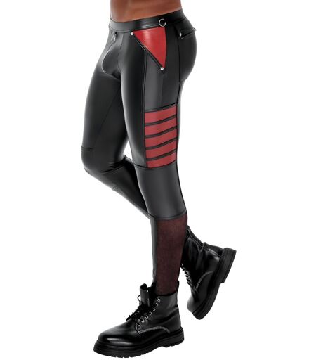 Eng geschnittene Hose von NEK im schwarzen Mattlook mit roten Kontrasten und markanten Nieten- und Ring-Details. Jeweils unten am Bein transparenter Netz-Einsatz. Mit bezogenem Gummizug-Bund und rundum weich & elastisch für hohen Tragekomfort. Vorne unterlegter Reißverschluss. Hinten 2 aufgesetzte Klappentaschen. 90% Polyester, 10% Elasthan. ...