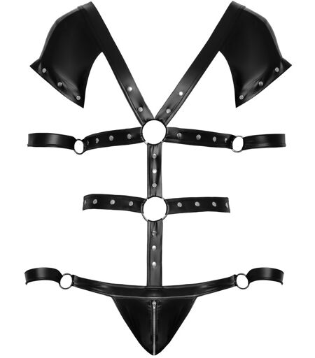 Svenjoyment Bondage Body in Harness-Optik mit 4 abnehmbaren Fesseln S