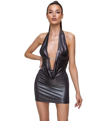 Kurzes Kleid von Cottelli PARTY im schillernden Silberglanz. Enge taillierte Schnittführung mit extra tiefem Wasserfall-Ausschnitt, der nur von einer dekorativen Strassspange zusammengehalten wird. Mit Neckholder - aufregend rückenfrei. Rundum schön elastisch für hautnahen Sitz und hohen Tragekomfort. 92% Polyester, 8% Elasthan. ...