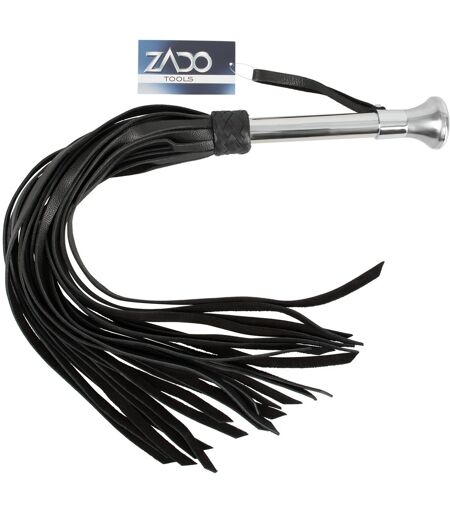 Zado Peitsche mit breiten Lederriemen und Edelstahlgriff, 73 cm