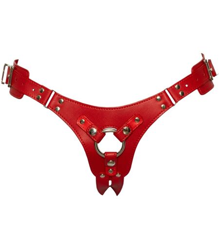 Roter Umschnallgurt von Bad Kitty in stilvoller Lederoptik mit Schnürung im Rücken. Lässt sich vielfach für perfekte Passform (Größe S-L) verstellen. Er ist universell benutzbar mit vielen Dildos und Vibratoren, die einen Saugfuß besitzen. Dazu einfach die Druckknöpfe in der Front öffnen und einen Dildo/Vibrator mithilfe des Frontringes aus Metall einsetzen. Ring-Ø 4 cm. Polyurethan, Metall. Dildo/Vibrator nicht im Lieferumfang enthalten. ...