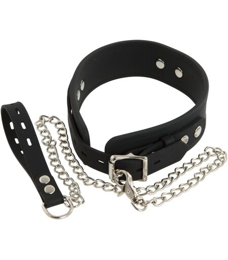 Diese Halsfessel aus hautfreundlichem Silikon schmiegt sich – etwas steif und schön schwer – um den Hals. Die genieteten Riemen sind mehrfach verstellbar. Länge der Leine ohne Schlaufe ca. 63 cm. Silikon, Metall. ...