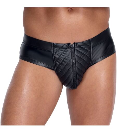 Betonende Pants von finesse HOMME im edlen schwarzen Mattlook. Mit unterlegtem Reißverschluss im markanten, gesteppten Beutel. Rundum weich und elastisch für hohen Tragekomfort. 90% Polyester, 10% Elasthan. ...