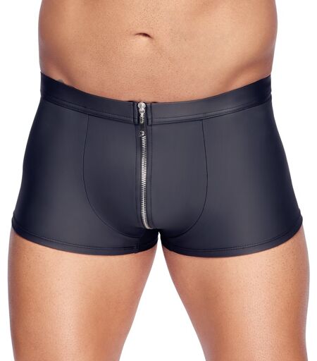 Aufregend betonende Pants von La finesse HOMME im schwarzen Mattlook. Vorne mit silberfarbenem Metall-Reißverschluss. Weich und elastisch für bequeme hautnahe Passform. 90% Polyester, 10% Elasthan, Polyurethan-Beschichtung. ...