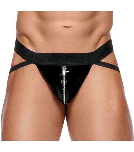 Schwarzer Lack-Jock von Black Level mit breitem bequemem Webgummi-Bund und komfortablen Webgummi-Riemen. Im Lack-Beutel mit silberfarbenem Reißverschluss. 100% Polyester, Polyurethan-Beschichtung. ...