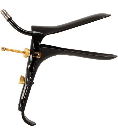 Speculum with Air & Liquid Tube von fetish collection in edler schwarzer Optik mit goldfarbenen Details. Lässt sich für vaginale und anale Untersuchungen leicht einführen und bequem spreizen. 2 Stellschrauben bieten optimale Verstellmöglichkeiten in Schnabelhöhe und Öffnungswinkel. Am bzw. im oberen Schnabel befindet sich ein Schlauchröhrchen für Luft oder Flüssigkeiten. Das stilvolle Spekulum ist aus hochwertigem Edelstahl gefertigt. Antiallergen und sehr hygienisch, da einfach zu reinigen. Es lässt sich leicht (im Wasserbad) erwärmen oder (im Kühlschrank) abkühlen. Gesamtlänge 15 cm, Einführlänge 10 cm. Schnabel geschlossen 2,5 cm hoch, 3,5 cm breit, spreizbar auf max. 7,5 cm. Gewicht 163 g. Metall. ...