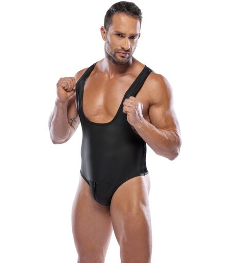 Stringbody von Svenjoyment im Ringerstyle mit markantem Reißverschluss im Beutel. Komplett im schwarzen Mattlook, der sich hautnah anschmiegt. Rundum elastisch und weich für Passformsicherheit und vollen Tragekomfort. 90% Polyester, 10% Elasthan, Polyurethan-Beschichtung. ...