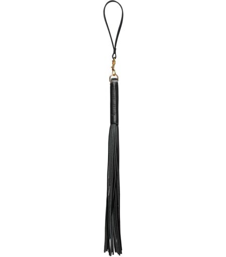 Handlicher Leder-Flogger von ZADO mit umwickeltem Griff und vielen weichen Lederriemen. Die Handschlaufe ist mit ihrem goldfarbenen Karabiner vom Griffring abnehmbar. Leder (chromfrei gegerbt), Metall. ...