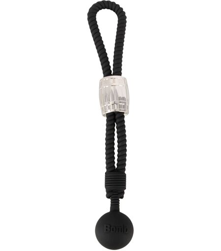 Schwarze robuste Penis-/Hodenschlaufe Heavy Rope Cock Strap with Ball von Rebel im Seil-Design mit edlem Metall-Schiebegewicht und zusätzlichem Kugelgewicht (insgesamt 166 g schwer). Kann ganz individuell dem Penis angepasst werden, um so vom erektionsfördernden Blutstau-Effekt zu profitieren. Oder die dehnbare Silikon-Schlaufe wird um die Hoden gelegt und lustvoll festgezurrt. Besonders raffiniert ist die Tragevariante um Penis UND Hoden. Bei jeder Tragevariante schwingt das Kugelgewicht erregend hin und her. So (schwer) gerüstet steht einem langen wilden Ritt nichts mehr im Wege! Schlaufe Gesamtlänge 21,5 cm, Materialstärke 0,9 cm. Als Doppelschlaufe jeweils Ø 5,5 cm (variabel und dehnbar). Schiebegewicht 3 cm lang, Ø 2,6 cm. Kugelgewicht Ø 3,1 cm. Gesamtgewicht 166 g. Silikon, Metall. ...