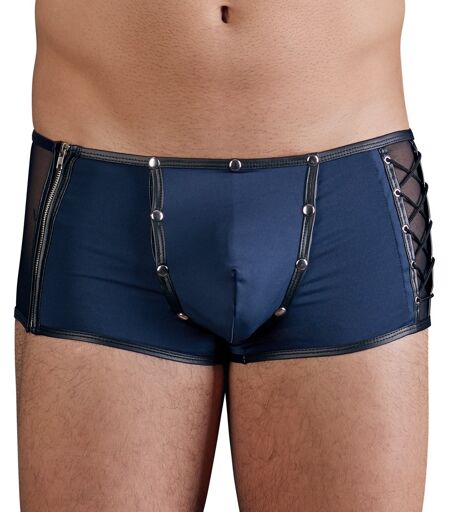 Edle Mikrofaser-Pants mit abgesetzten Kanten im Mattlook und abknöpfbarem Beutel. Auf der rechten Seite mit silberfarbenem Reißverschluss und seitlich links mit raffinierter Schnürung. Angenehm elastisch für eine optimale Passform und maximalen Tragekomfort. 92% Polyester, 8% Elasthan. ...