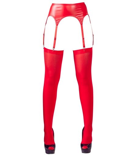 Schlichter Strapsgurt im edlen Mattlook mit silberfarbenen Metallteilen und 3 Strapsen pro Seite. Die passenden roten Strümpfe sind auch gleich dabei. Ein absolutes Must-have für alle Verführerinnen und vielfach kombinierbar. Strapse verstellbar. 90% Polyester, 10% Elasthan, Polyurethan-Beschichtung. ...