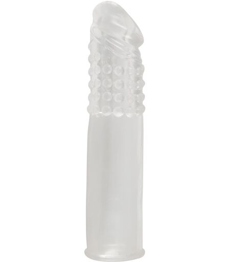 Transparente Penishülle mit ausgefüllter Eichel, Reizrillen und Noppen. Verlängert und verdickt den Penis. Stimuliert intensiv den Lustkanal. Gesamtlänge 17,5 cm, Einführtiefe 16 cm, Ø 3,2 cm (stark dehnbar), Wandstärke 2 mm. TPE. ...