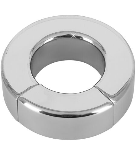 Ein Ballstretcher hat die Aufgabe, den Hodensack oberhalb der Hoden zu umschließen und in die Länge zu ziehen/strecken. Hieraus ergibt sich, dass die Hoden selbst in das Hodensackende gedrückt werden. Je länger also der Ballstretcher selbst ist, desto mehr Gewicht und Streckvermögen hat er auch. Das reicht von einem leichten, geilen umschlossenen Gefühl bis hin zum starken Ziehen, durchaus mit gewolltem, leichtem bis starkem Schmerzempfinden. Dieses Exemplar ist Ring und Stretcher in einem und verfügt über einen starken Magneten im herausnehmbaren Teilstück des Ringes und ermöglicht ein leichtes Einführen des Hodens. Silberfarbener Penisring/Hodenstretcher aus Edelstahl mit Magnetsegment zum Öffnen und Verschließen. Innen-Ø 34 mm, Außen-Ø 63 mm. Ringstärke 20 mm. Gewicht 341 g. Metall. ...