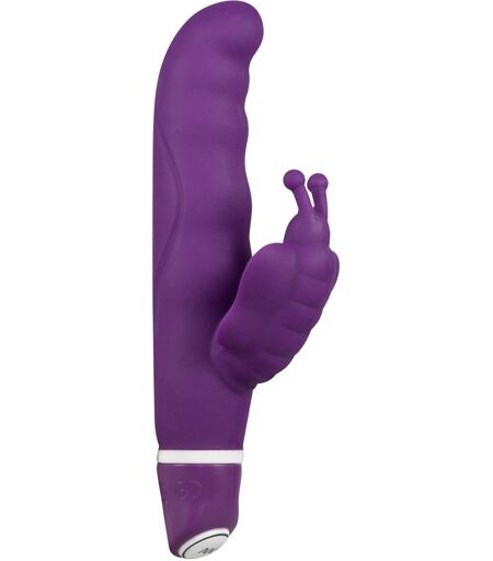 Vibrator mit Klitorisreizarm im Schmetterlingsdesign. Mit zwei Motoren: einer in der G-Punkt-Spitze und einer im Klitorisreizam. Die 7 Vibrationsarten sind bequem per Knopfdruck steuerbar. Gesamtlänge 15,5 cm, Ø 2,5 cm. Silikon, ABS. Batterien bitte extra bestellen: 2 x AAA. ...