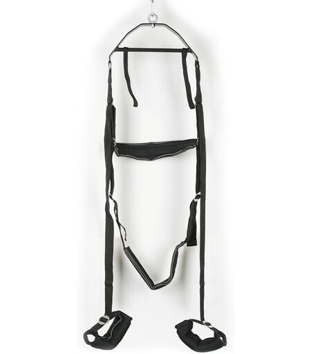 Stellungen, die im Bett "technisch" unmöglich sind, werden mit dieser schwarzen Schaukel zum neuen Lust-Vergnügen. Trage- und Aufbaukonstruktion (Traverse) 38 cm breit. Gurte, Hand- und Fußschlaufen aus reißfestem Nylon, gepolstert und längenverstellbar. Belastbar bis 100 kg. Inklusive Peitsche (38 cm lang) mit 8 Striemen und Ledergriff, Augenmaske und Montage-Zubehör. Metall, Polyester, Spaltleder, Polyamid. ...