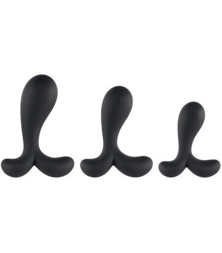 Butt Plug Training Set With Slightly Curved Tips von ANOS mit 3 Silikon-Analplugs in verschiedenen Größen und Gewichten. Perfekt für rektale Stimulation und Dehntraining. Jeder glatte Plug mit leicht gebogener, ausgeformter Spitze, um insbesondere die Prostata (P-Punkt) gezielt zu stimulieren. Der 2-armige Stopper sorgt dabei für analsicheren Sitz und Spaß sowie bequemes Herausziehen. Alle 3 Analplugs sind aus seidig-softem Silikon gefertigt und in der Verjüngung flexibel. Für leichtes Einführen, optimale Anpassung und höchsten Komfort beim Anal-Training! Maße: Plug S: Gesamtlänge 7 cm, Einführlänge 5 cm, Ø max. 2,3 cm, Verjüngungs-Ø 1,2 cm. Gewicht 24 g. Plug M: Gesamtlänge 8,3 cm, Einführlänge 6 cm, Ø max. 2,7 cm, Verjüngungs-Ø 1,3 cm. Gewicht 39 g. Plug L: Gesamtlänge 9,5 cm, Einführlänge 7 cm, Ø max. 3,1 cm, Verjüngungs-Ø 1,4 cm. Gewicht 49 g. Silikon. ...